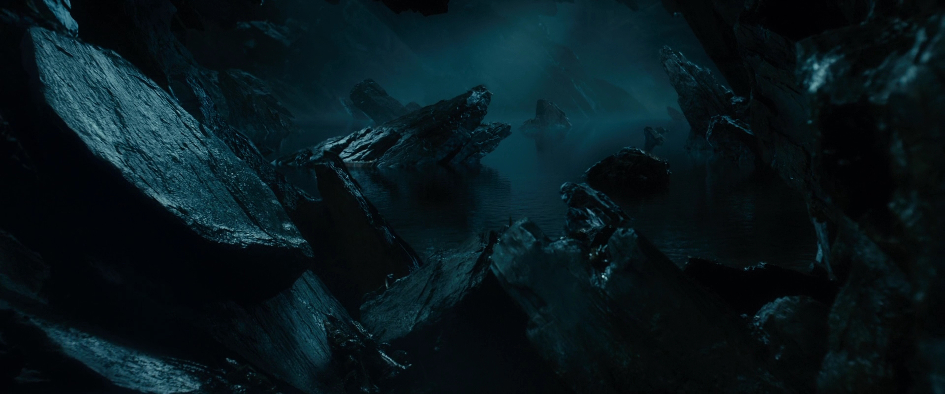 Bahia exploring a cave, while some.shady creatures lurk around.